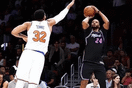 [流言板]布伦森45度三分空位出手再中,半场14投9中已砍下24分